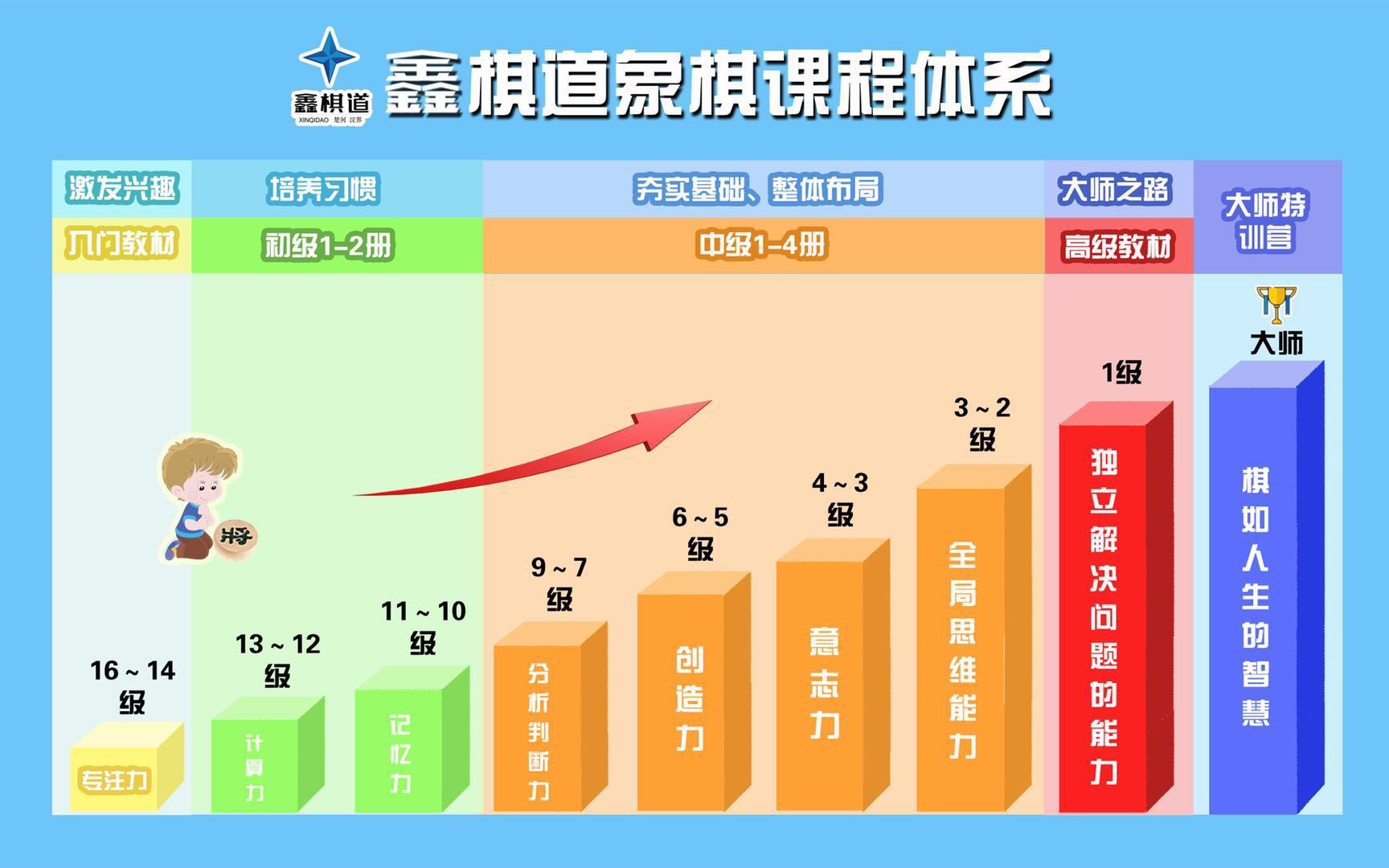 在象棋的胜负世界中,让孩子在胜利中获得快乐,在失败中品尝痛苦。一次失败就是一个挫折,经得起挫折,才能成为高手。